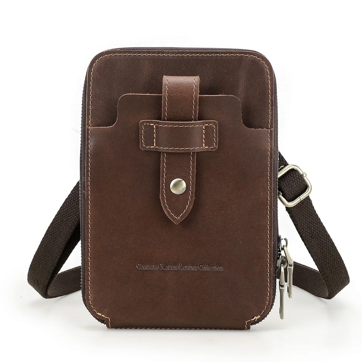 Fermeture : zip métallique robuste + rabat avec bouton-pression