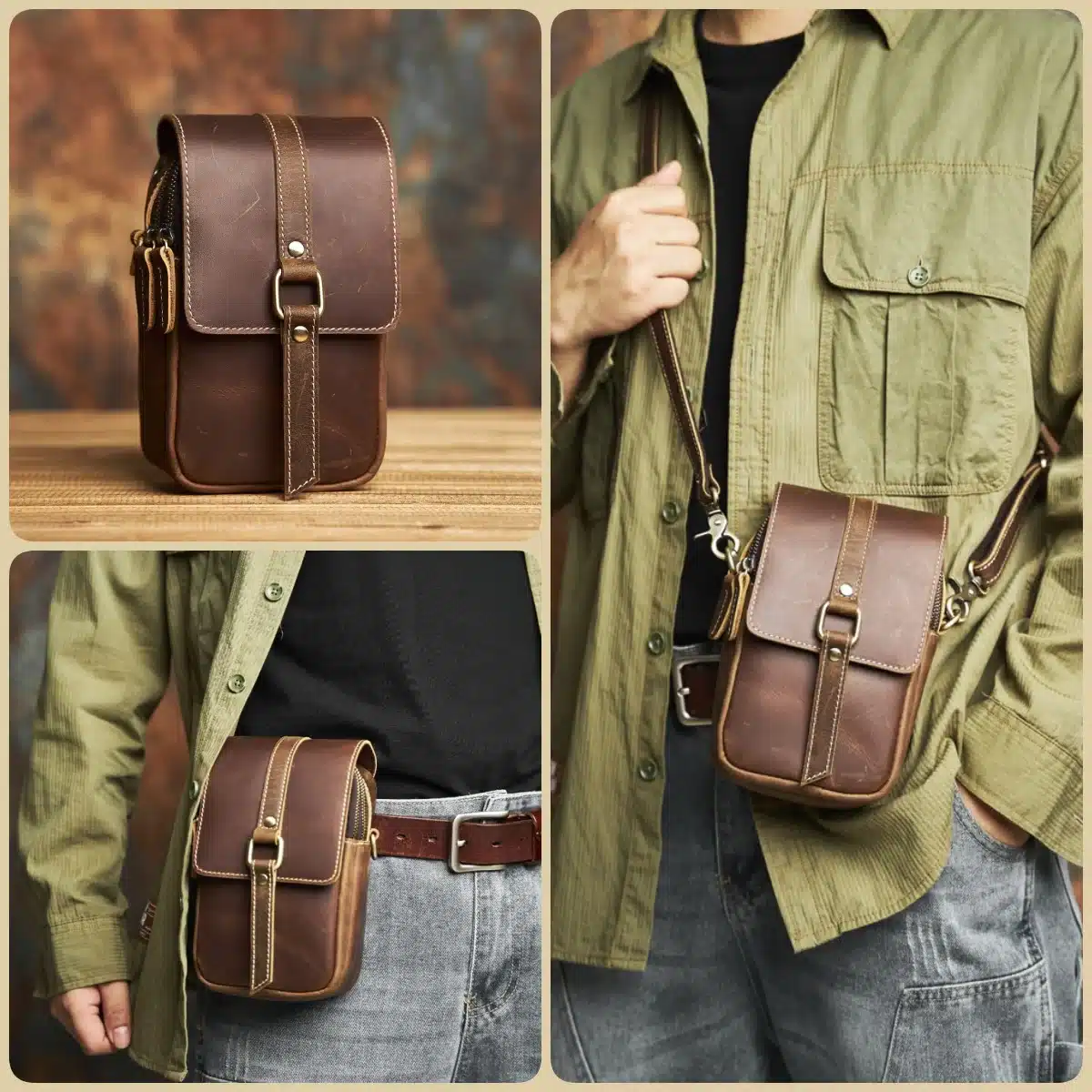 Alliant style intemporel et fonctionnalité, cette sacoche homme ceinture en cuir véritable est le compagnon idéal pour vos sorties. Elle peut aussi bien s’adapter à un port à la taille qu’en bandoulière.